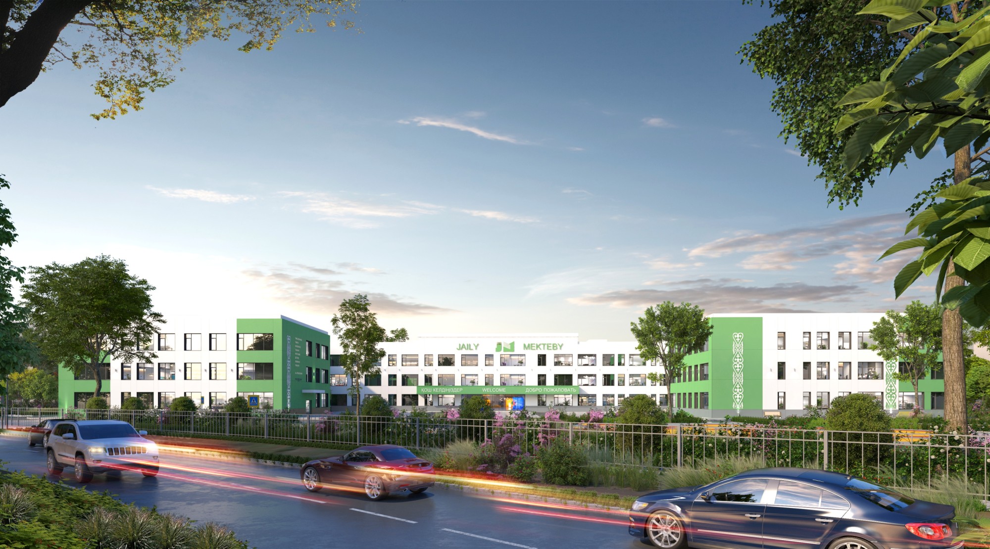 В рамках реализации пилотного национального проекта в области образования «Комфортная школа» предусмотрено строительство школы на 1500 обучающихся, согласно Постановлению Правительства № 963 от 30 ноября 2022 года. Строительство объекта предусматривает трёхэтажное здание сложной формы с подвалом которое поделено на правое крыло для начальной школы, левое крыло для старшего и среднего звена, и центральный блок - общешкольные помещения. Основной вход старшего и среднего звена расположен во внутреннем дворе, где возможно проведение линеек и общешкольных мероприятий. Входные зоны начальной u пришкольной школы расположены справа. Начальная школа имеет свои два спортивных зала, изолированных от старшей школы зал в обеденной зоне. Предшкольные классы и 1-е классы имеют изолированный вход и классы поделены на блоки по 3 класса со своими санузлами. Архитектура здания школы выполнена в современном стиле.