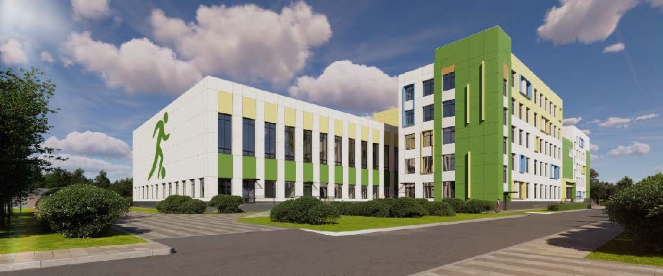 В рамках реализации пилотного национального проекта в области образования «Комфортная школа» предусмотрено строительство школы на 2000 обучающихся, согласно Постановлению Правительства № 963 от 30 ноября 2022 года. Строительство объекта предусматривает здание школы с необходимыми площадками для занятий и отдыха школьников. Классы оснащены соответствующей мебелью: интерактивная панель, меловая и маркерная аудиторные доски, стол учителя, стол демонстрационный, столы (парты), стулья, шкафы для учебных пособий. Также в состав учебных кабинетов входят лаборатории по химии, физике и биологии с лаборантскими, кабинет информатики, предусмотрены 2 кабинета музыки с возможностью изучения демонстрационных музыкальных инструментов, оснащенный необходимым оборудованием и мебелью кабинет НВП, актовый (зрительский) зал с эстрадой , библиотека, медицинское помещение, 2 спортивных зала и столовая. Средняя общеобразовательная школа на 2000 учащихся является комфортной школой для осуществления благоприятной общеобразовательной среды для формирования и развития детей.
